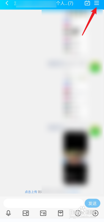 在群聊天界面,点击右上角的三个横线。