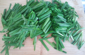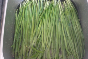 1、韭菜泡水洗干净;去掉韭菜尾黄色部分,稍晾干