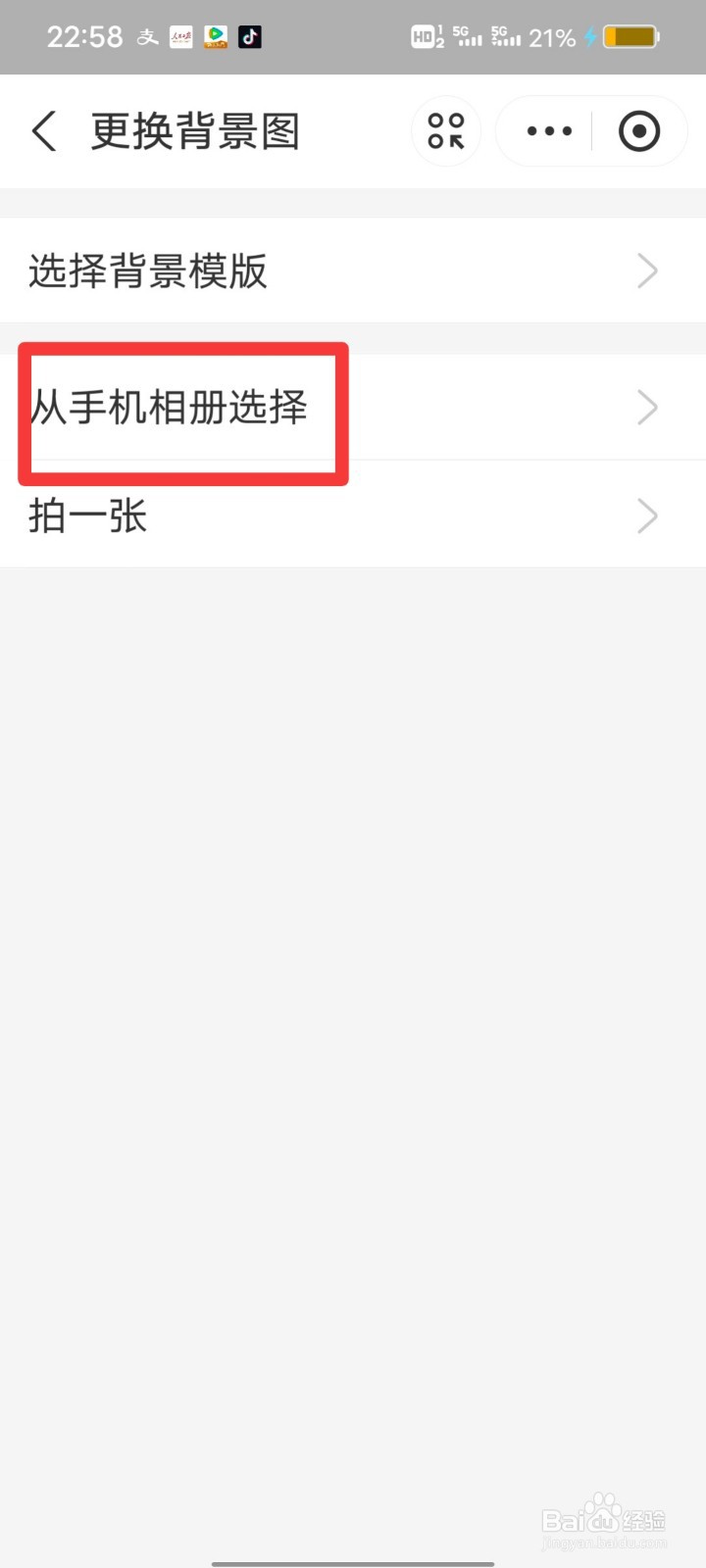 在新的页面,点击【从手机相册选择】,选择自己喜欢的照片即可。
