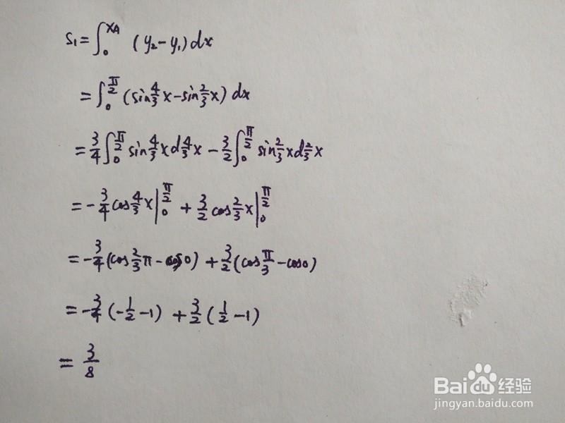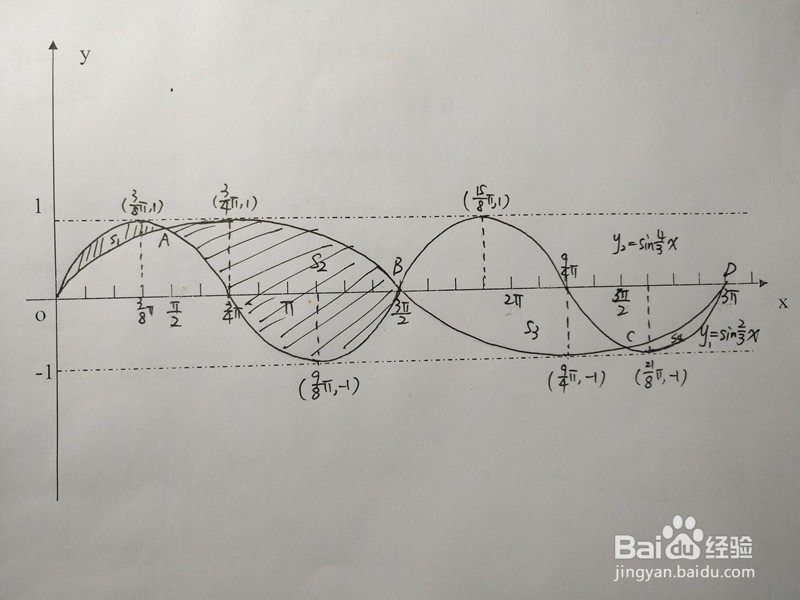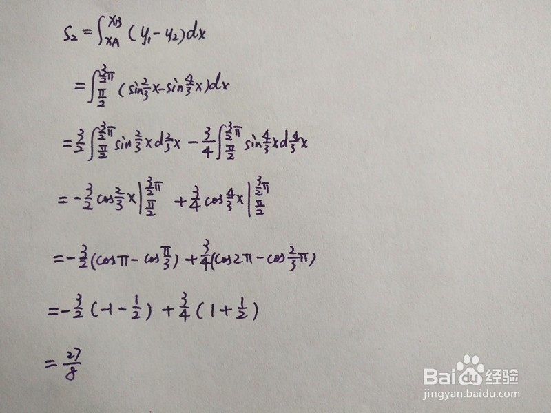 本经验介绍,y=sin2x/3与y=sin4x/3围成的面积的计算方法。