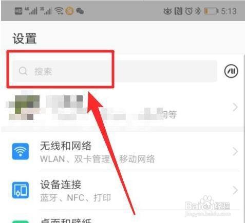 先点击手机的设置图标进入,点击顶部搜索的输入框