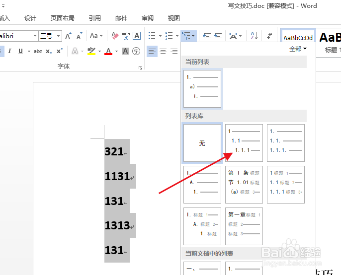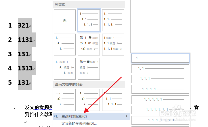 也可以在这里更改列表级别。