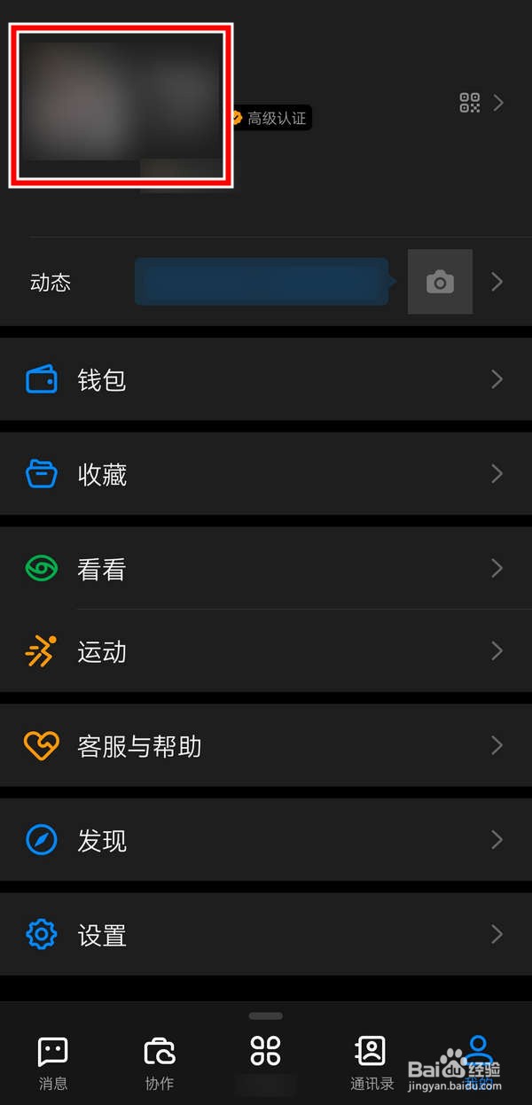 在APP我的页面,十项内容,点选左上角的头像;