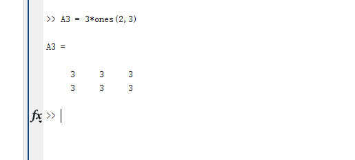 在matlab命令行输入: A3 = 3*ones(2,3)