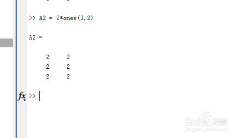 在matlab命令行输入:A2 = 2*ones(3,2);
