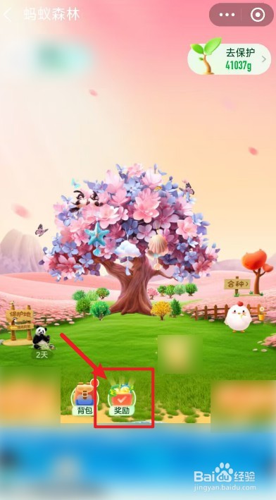 进入蚂蚁森林首页,点击下方的【奖励】图标。