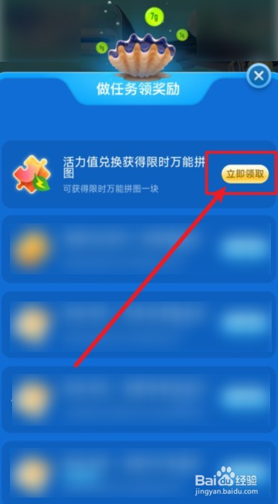点击【立即领取】即可获得刚刚兑换的神奇海洋万能拼图。