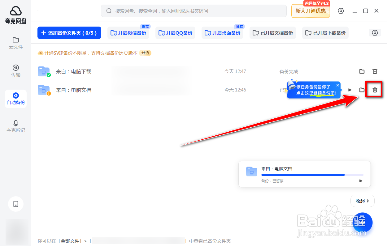 在夸克网盘中,如何取消自动备份任务?请看下面的经验。