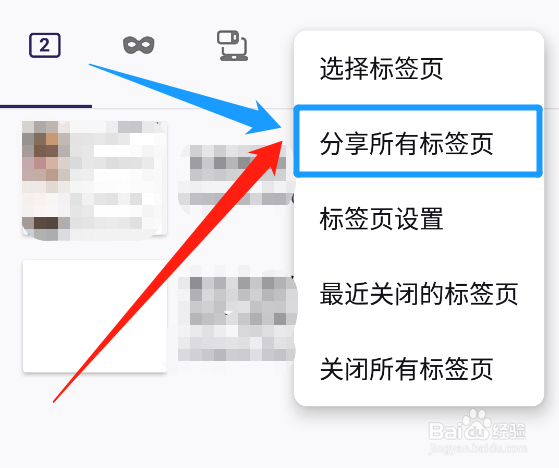 点击菜单列表的“分享所有标签页”选项。