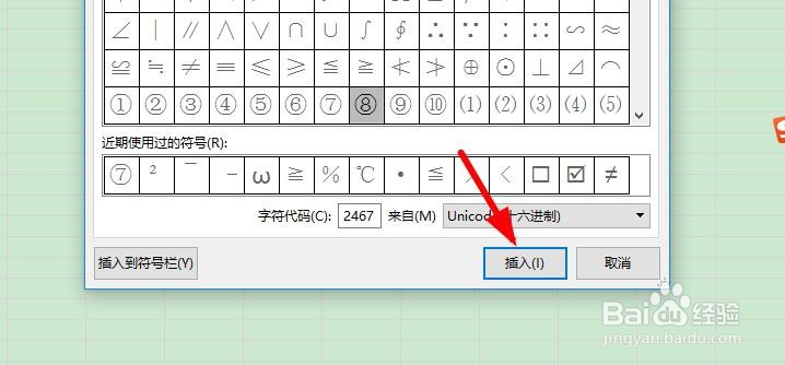 往下滑动就可以看到【带圈数字】,点击【插入】就可以了。