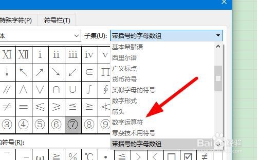 点击右侧的【子集】选项,切换到【数字运算符】。