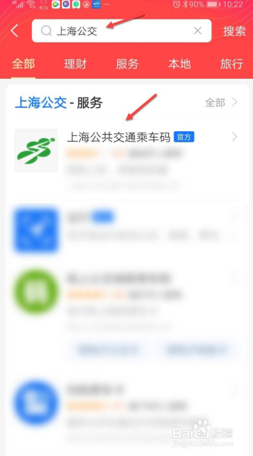 在手机桌面找到支付宝,打开支付宝,点击搜索框,输入并点击进入上海公共交通乘车码,点击去乘车,用乘车二维码直接付款即可