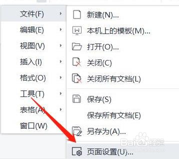2、在弹出的菜单中,选择【文件】,再选择【页面设置】。