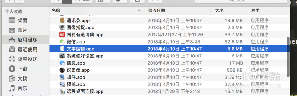 打开文本编辑软件,Finder->应用程序->文本编辑