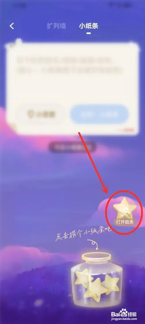 在小纸条页点击“打开纸条”图标,即可打开小纸条。