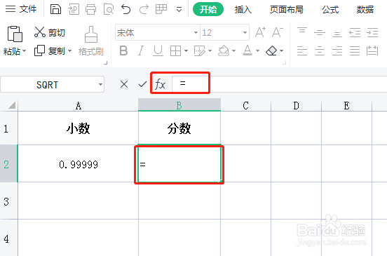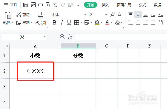 打开excel软件,新建一个excel表格,输入循环小数0.99999。