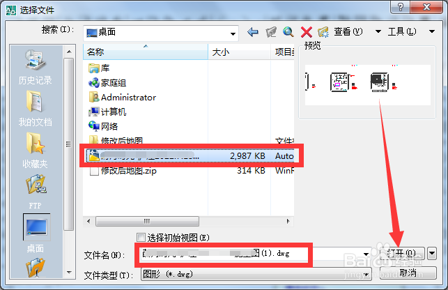 选择文件,点击“打开”按钮,这样就可以打开一个已有的CAD文件了。