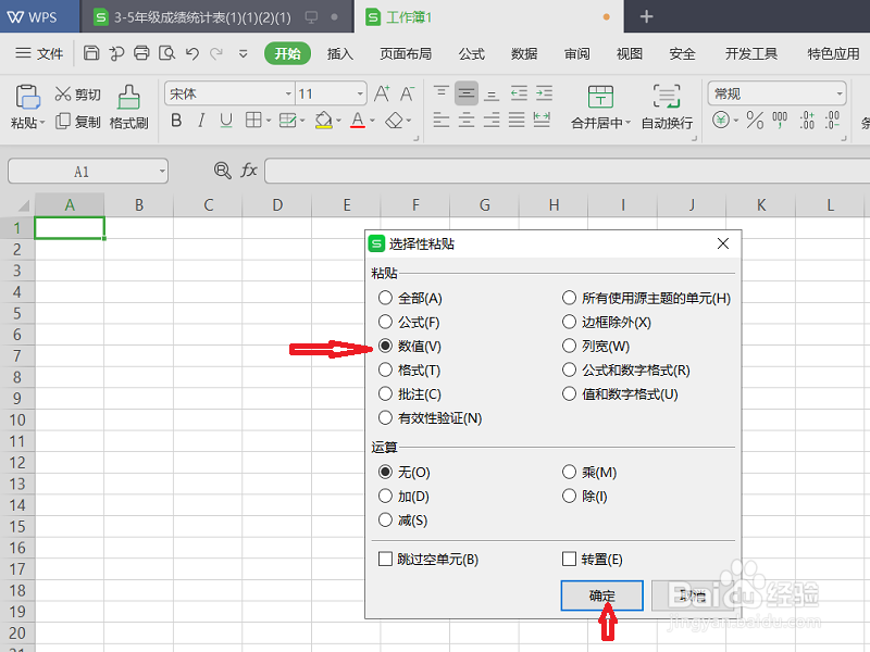 在打开的对话框中,选择数值选项,点击确定,数据就成功粘贴过来了。