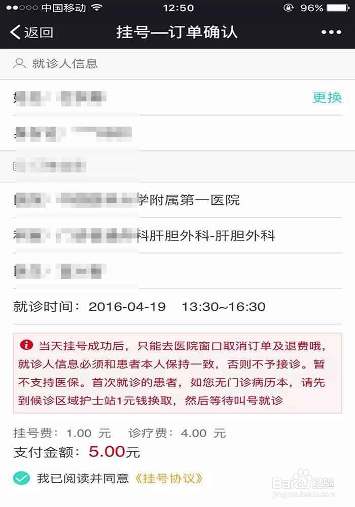 登录后你就可以看到被确认的订单,如果你想再给别人挂号,可以在页面上更换就诊人。