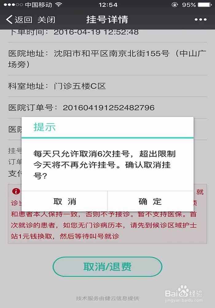 虽然可以取消挂号订单,但是还是要事前斟酌好,每天只允许取消六次挂号,不能因为操作错误而耽误了就医,也不能拖延时间浪费宝贵的医疗资源。