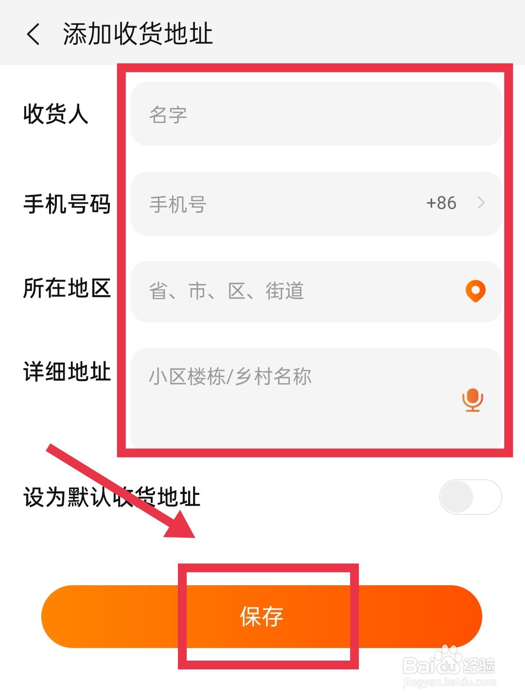 新页面里,填写收货地址信息,点击下方【保存】选项即可。