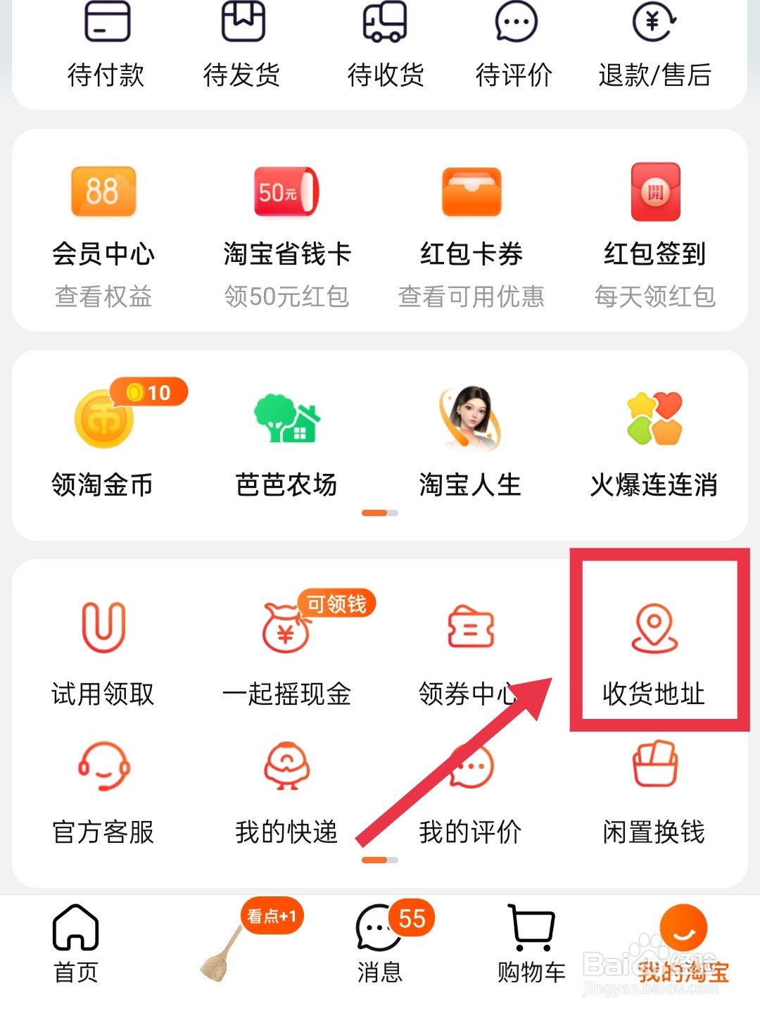 我的淘宝页面,点击下方【收货地址】选项。