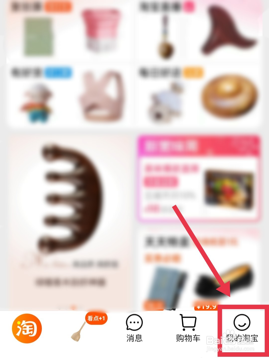 打开手机淘宝,点击职业右下角【我的淘宝】选项。