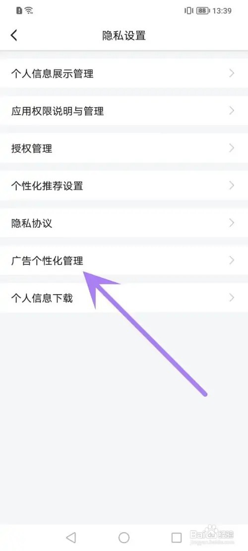 第三步,进入隐私设置页面,点击【广告个性化管理】