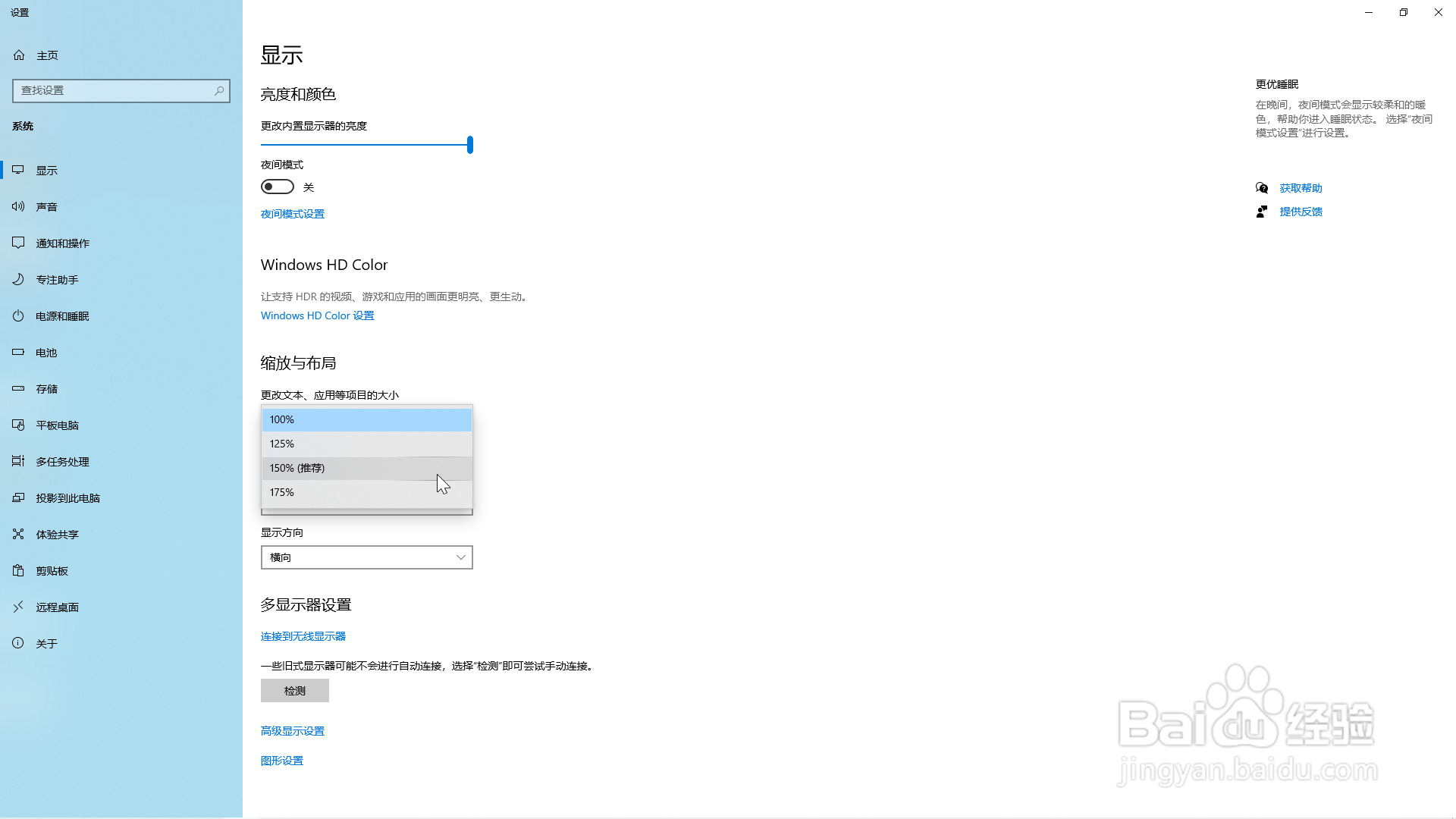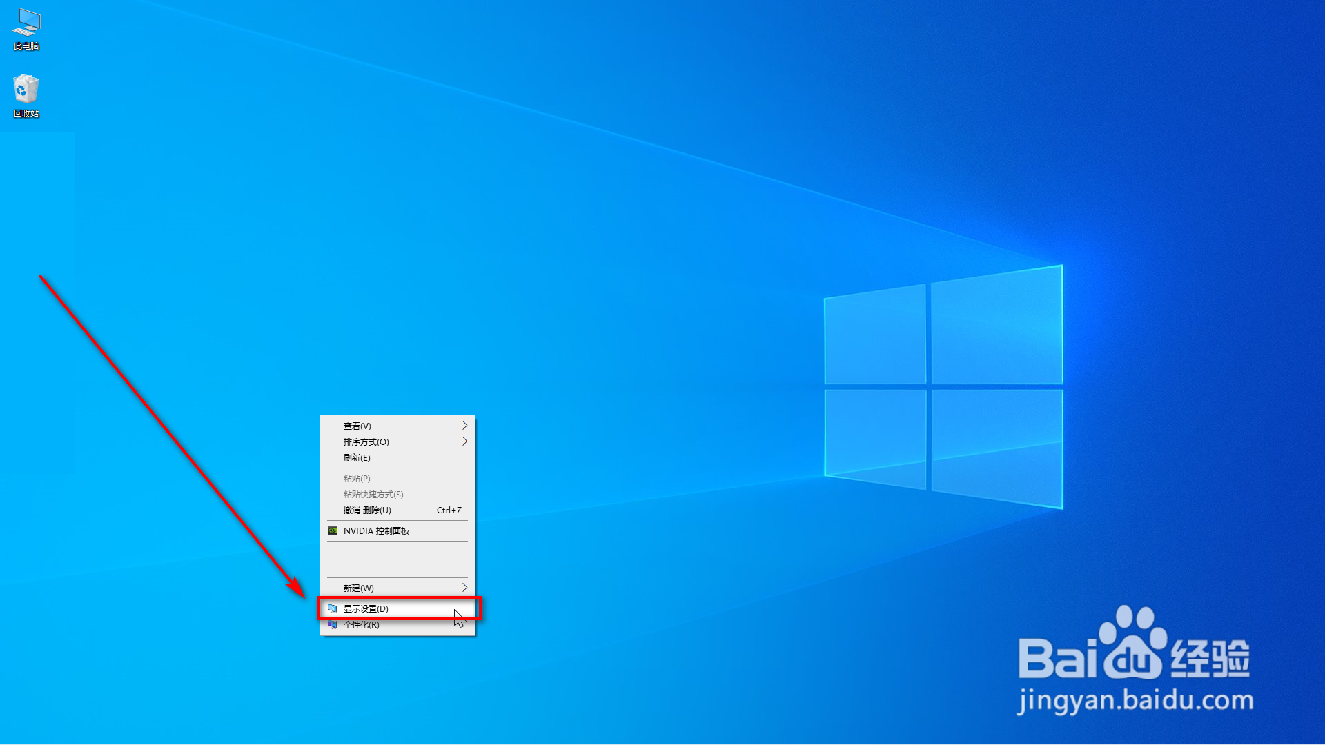 回到桌面,在空白处点击鼠标右键,选择“显示设置”,页面跳转,可以看到缩放布局为100%,显示分辨率为1920*1080,两个数值都很高,这是字体特别小的原因所在。