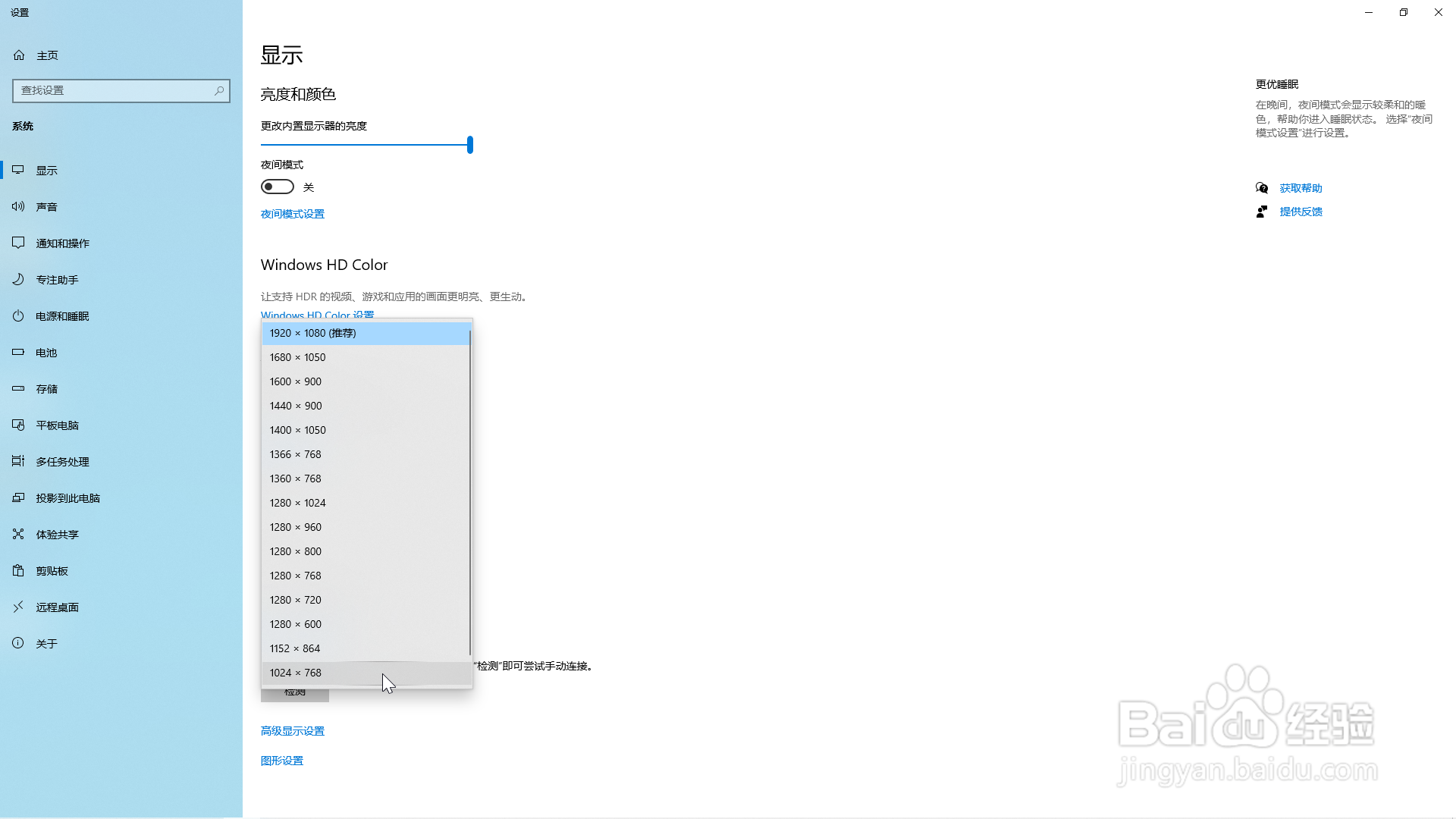 点击分辨率下拉框,选择一个小一点的分辨率。