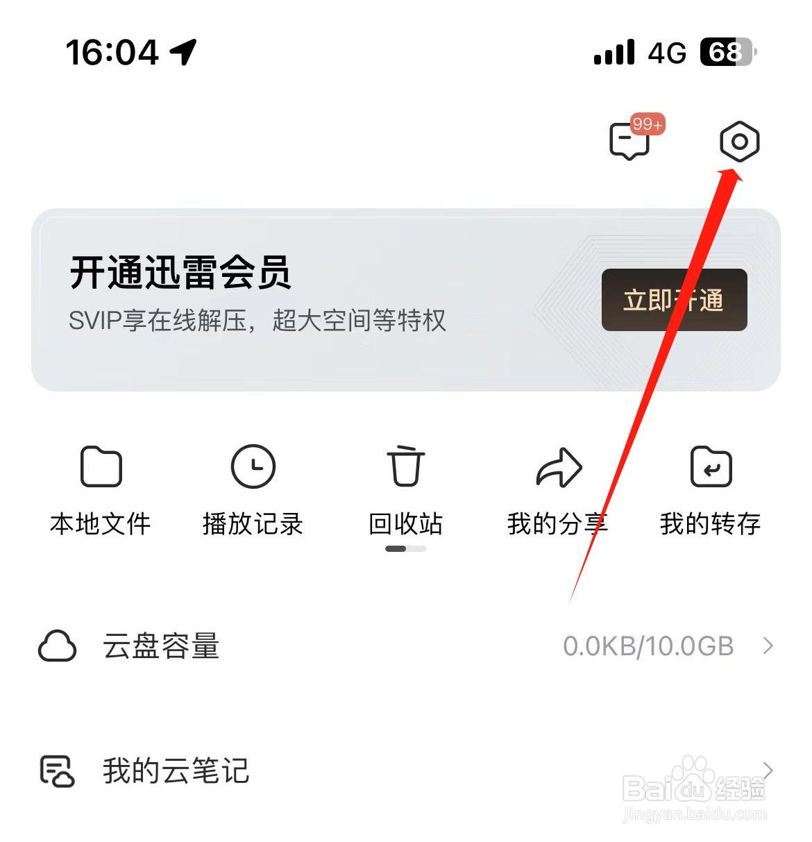 登录迅雷app后,在我的界面点击右上齿轮,进入系统设置。