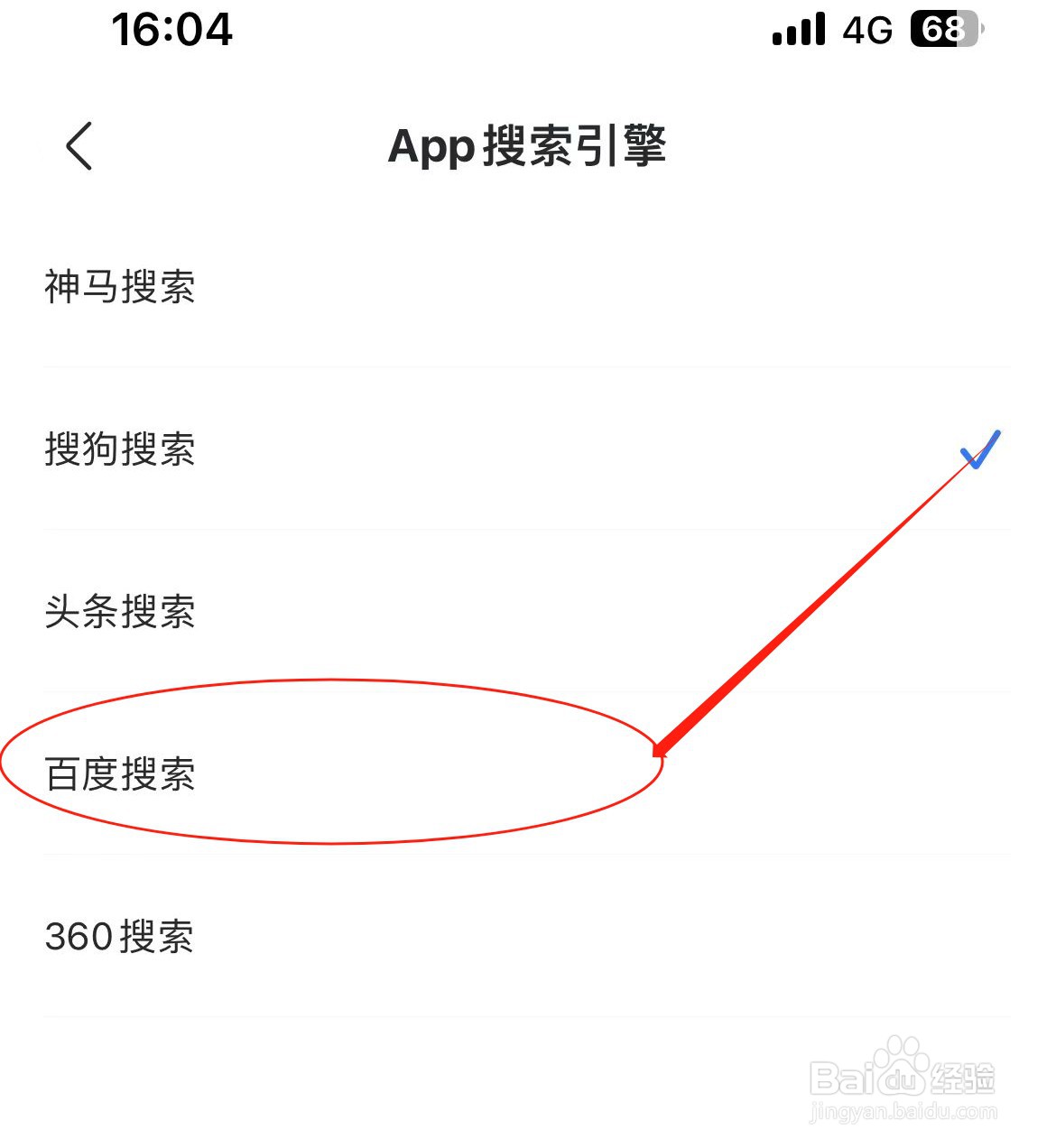 在此界面即可设置搜索引擎,勾选一个搜索引擎,例如百度搜索这样即可设置完成。