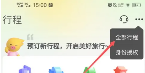 在“菜单”弹出下拉框中,点击【全部行程】,就可以查看到所有的行程信息了。
