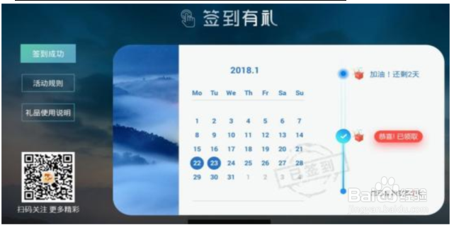 点击后进入签到页面,选中日期签到即可。系统会提示距离领取优惠券还剩几天。