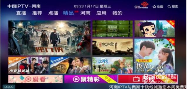 河南IPTV是利用联通宽带网,集互联网、多媒体、通讯等多种技术于一体,向家庭用户提供包括数字电视在内的多种交互式服务,该服务能为家庭宽带用户提供通过机顶盒+电视机的方式,进行视频节目的直播、点播、回看的功能,除此之外还可以通过此方式提供互联网应用和视频通信等丰富的应用业务服务。