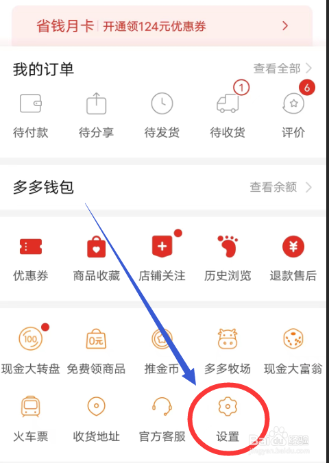 第一步:打开拼多多APP,点击【设置】