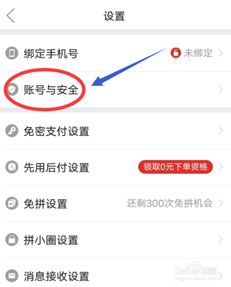 第二步:进入设置界面,点击【账号与安全】