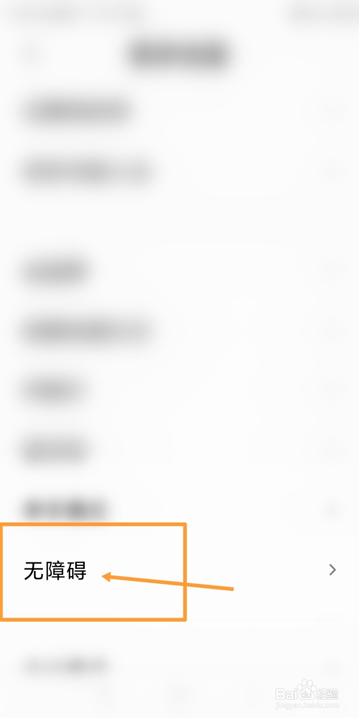 在更多设置页面中,点击页面上的无障碍,如下图所示: