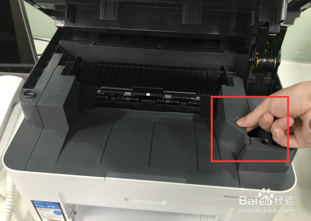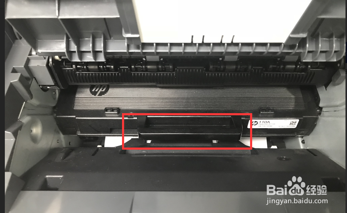 打开硒鼓舱门盖后即可看到硒鼓,如图红色部分为硒鼓把手。