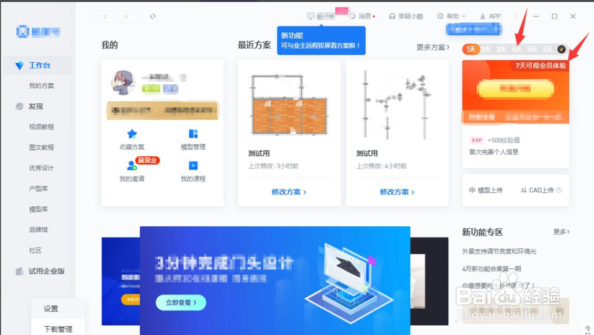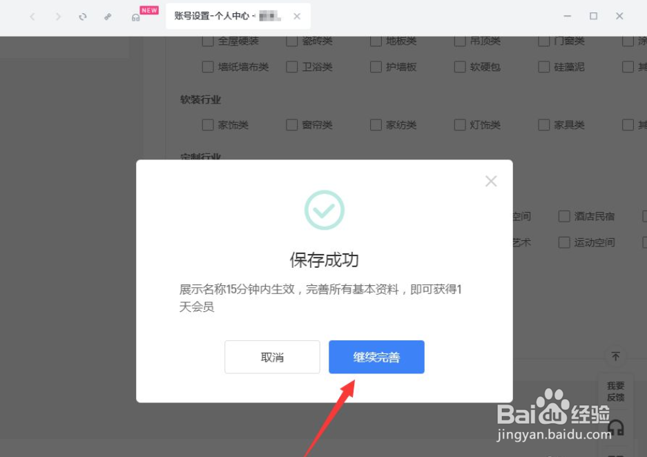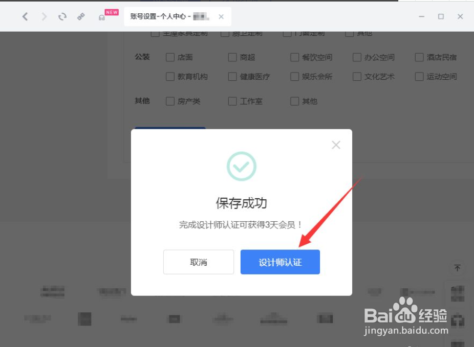 完善后保存即可获得一天会员,设计师认证后可获得三天会员体验。