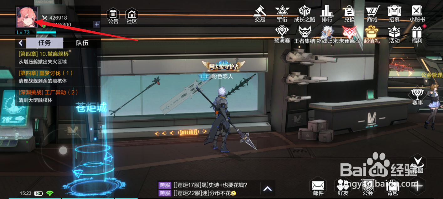 打开时空猎人3手游,点击左上角的【个人头像】。