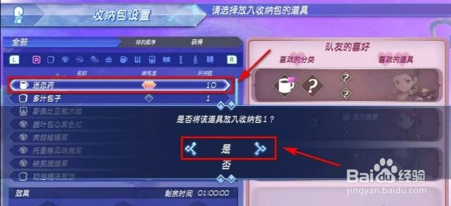 选择迷恋药,即可将迷恋药放入收纳包使用