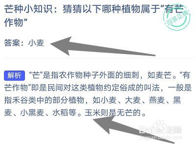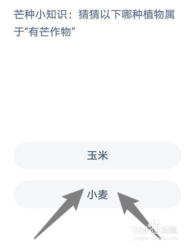 蚂蚁庄园6月6日问题:芒种小知识:猜猜以下哪种植物属于"有芒作物"?