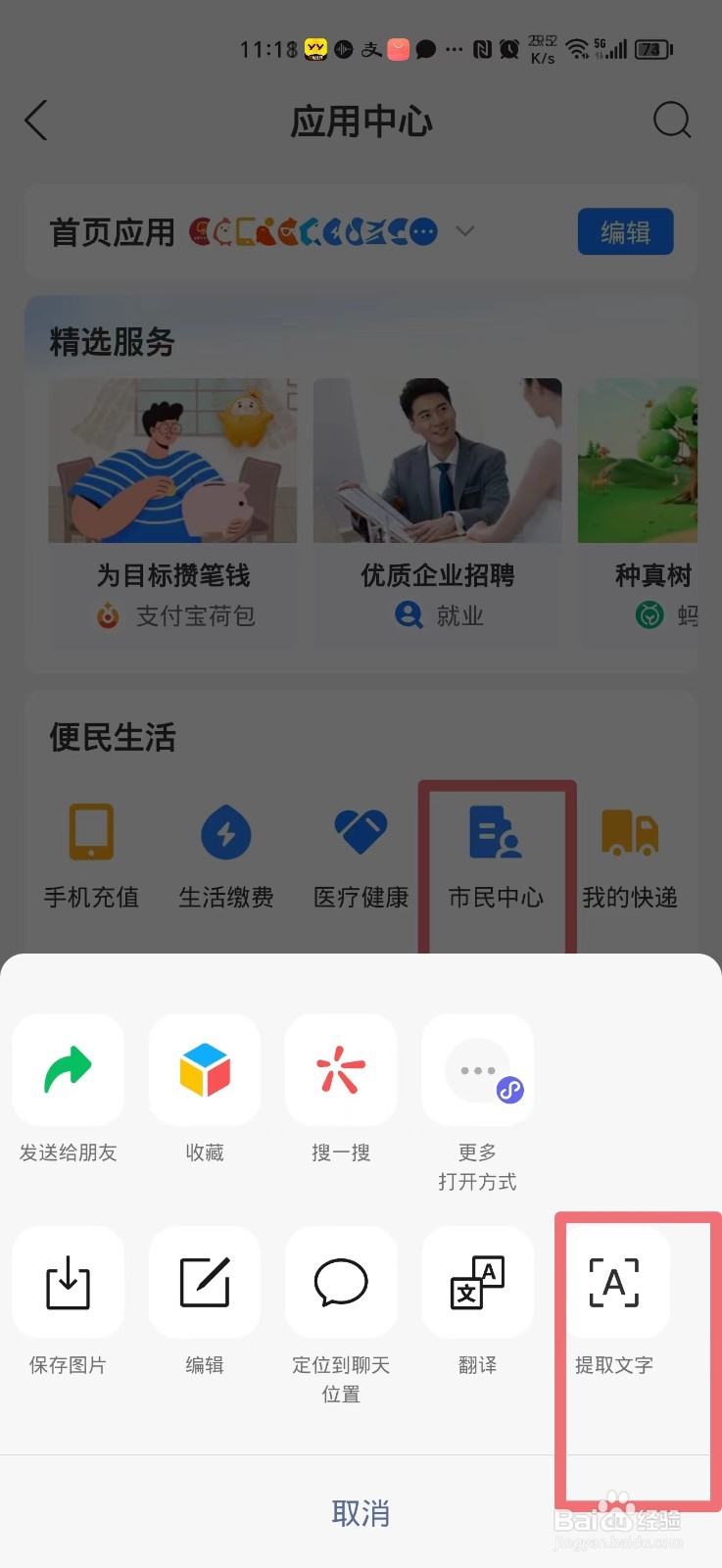 首先打开微信图片,长按图片,在弹出的页面点击提取文字