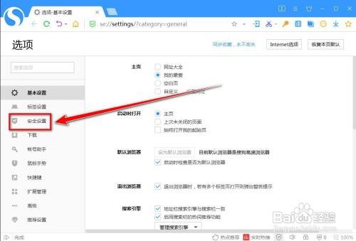 在设置页面中,点击左侧的【安全设置】,如图所示