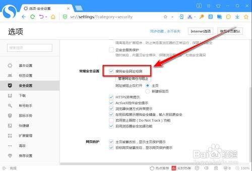 在安全设置页面中,勾选【搜狗安全网址检测】,如图所示?
