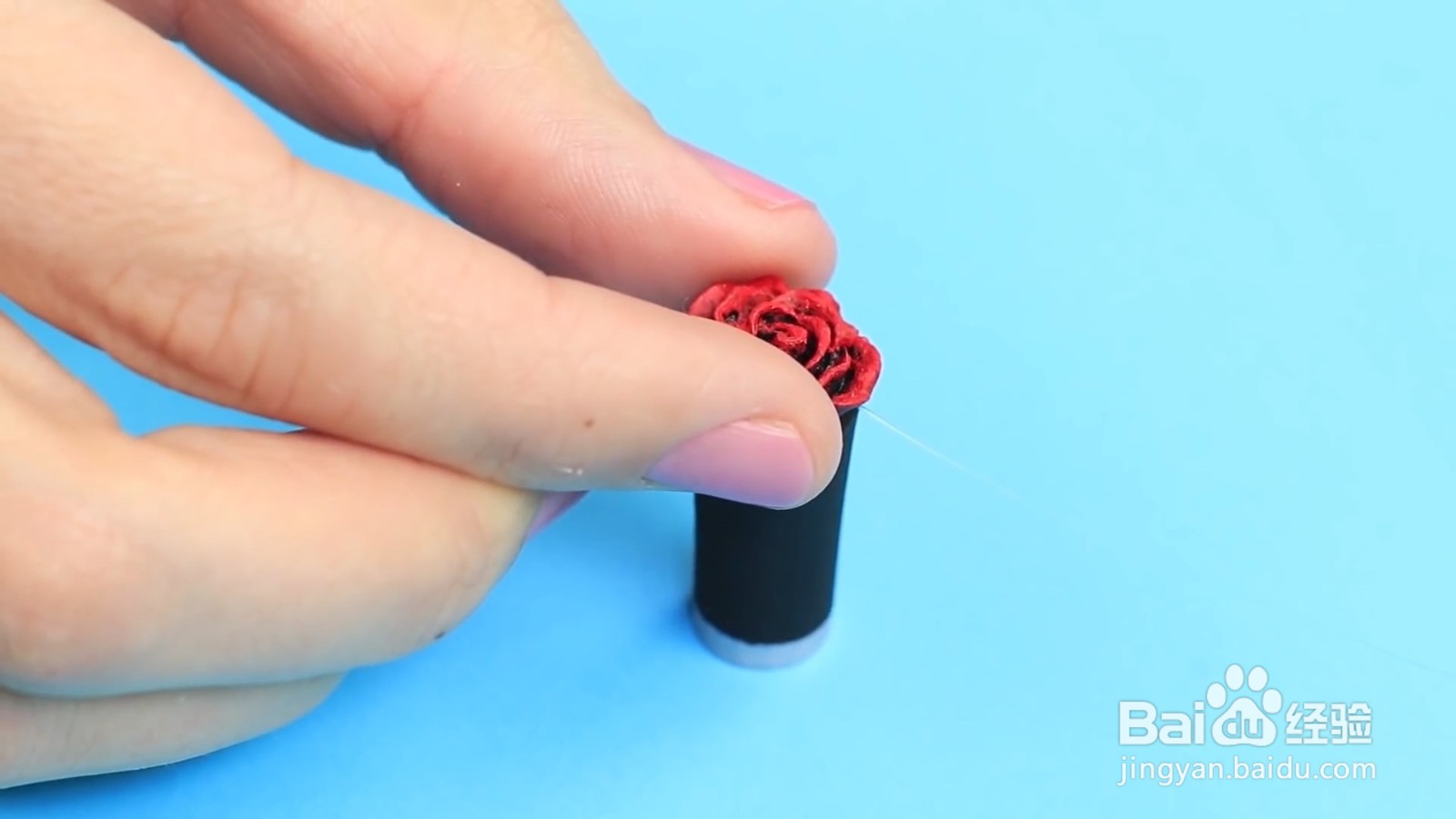 然后粘上塑料玫瑰。