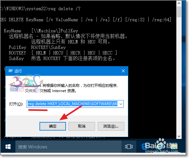 怎么用DOS命令reg命令删除注册表子项或键值