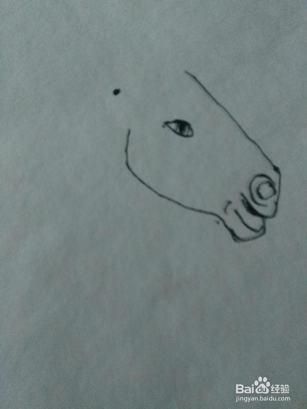 先用笔画一条斜着的直线,在下边画出鼻孔,和嘴巴大家注意我画的鼻孔和嘴巴是怎么画的,