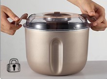 将小盖装入上盖中,小盖上的“▲”标识对齐上盖上的,标识,按顺时针方向旋转至小盖上的“▲”标识对齐上盖上的“凸”,标示紧锁,逆时针旋转可松开小盖,在工作中可随时打开添加少量食材。